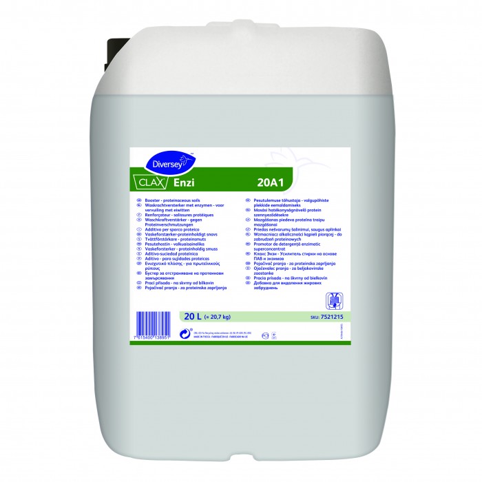 Clax Revoflow ENZI este un promotor de detergenţă enzimatic superconcentrat, care conţine un amestec eficient de surfactanţi de surfactanţi şi enzime. Surfactanţii din componenţa produsului asigură o îndepărtare excelentă a grăsimilor, atât la temperaturi mari, cât şi mici, unde enzimele îndepărtează eficient petele proteice la temperaturi medii. Produsul este conceput pentru a fi folosit alături de alte produse din gama Clax Revoflow, în special atunci când sunt probleme cu performanţa de spălare. În cazul în care îndepărtarea grăsimilor şi/sau a proteinelor este o problemă, acest produs este ideal de folosit atunci când temperaturile de spălare sunt limitate. Clax Revoflow ENZI poate fi folosit şi ca detergent în spălarea principală pentru articolele textile delicate şi pentru cele din lână.